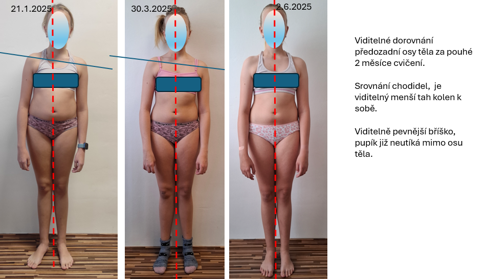 My si u nás dítě vyfotíme ve spodním prádle, to proto, abychom v budoucnu mohli pořizovat srovnávací fotografie. Také nám již na první schůzce fotografie pomohou k vysvětlení chyb v držení těla.